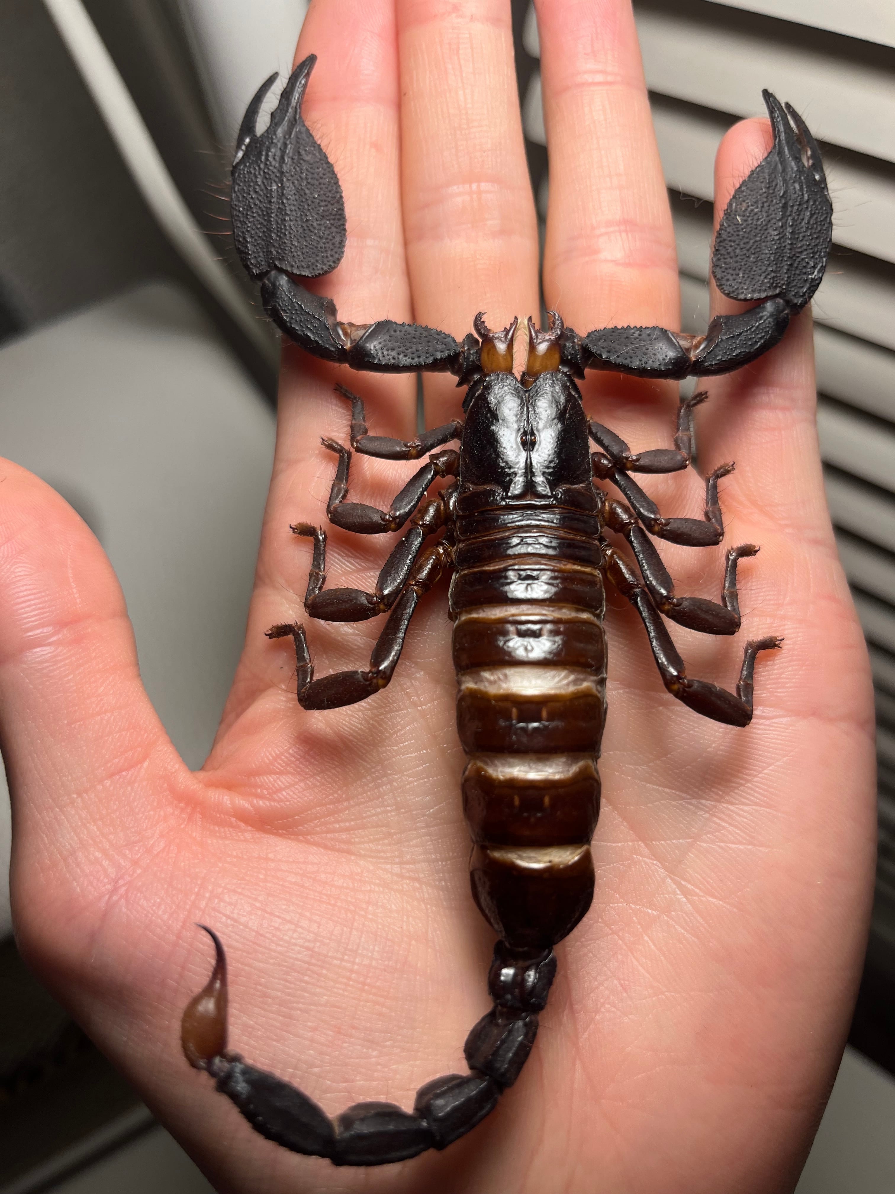 別名のインディアンジャイアントフォーレストスコーピオンという名の通りインドに生息しているためかなりレアです。