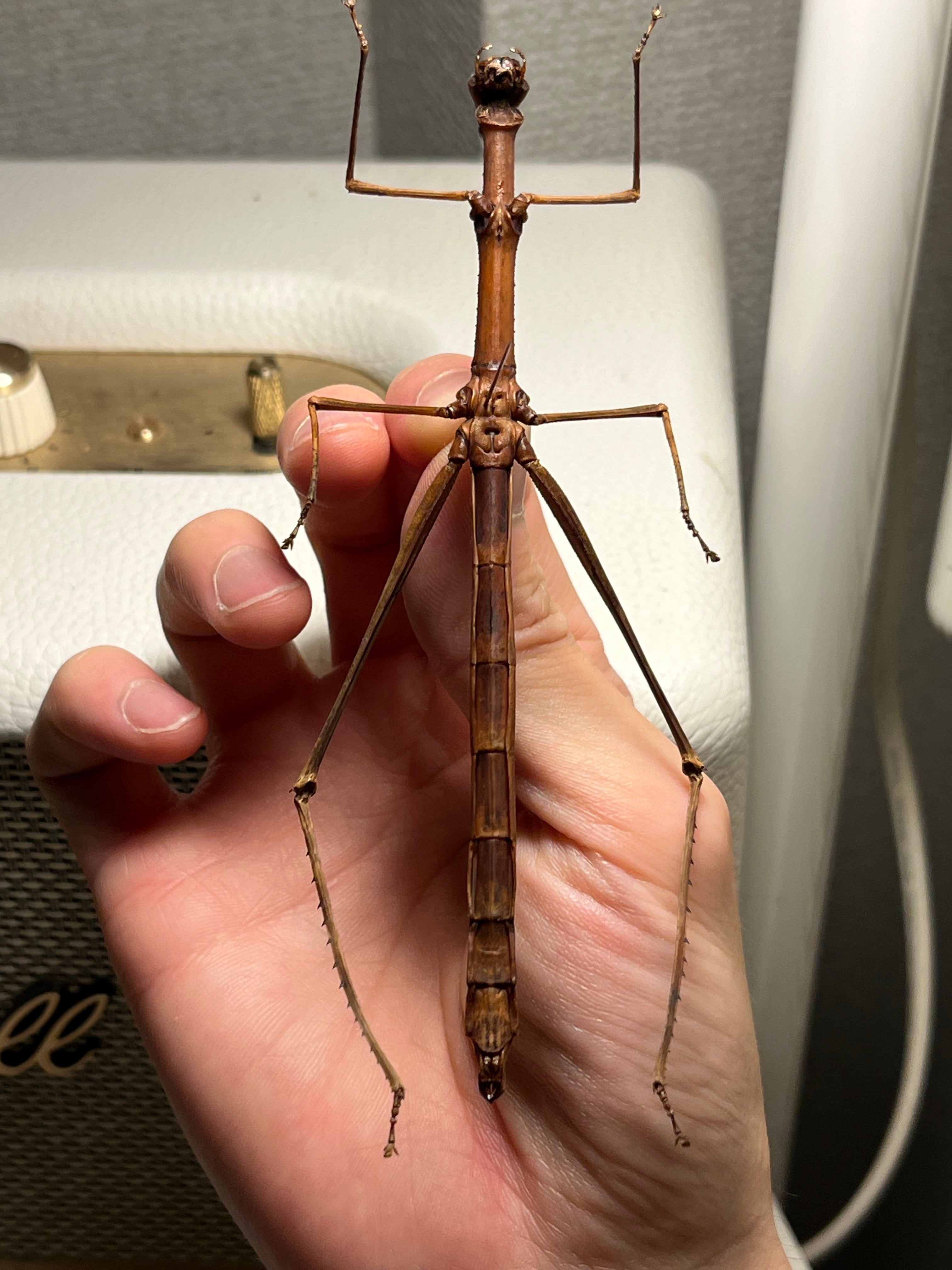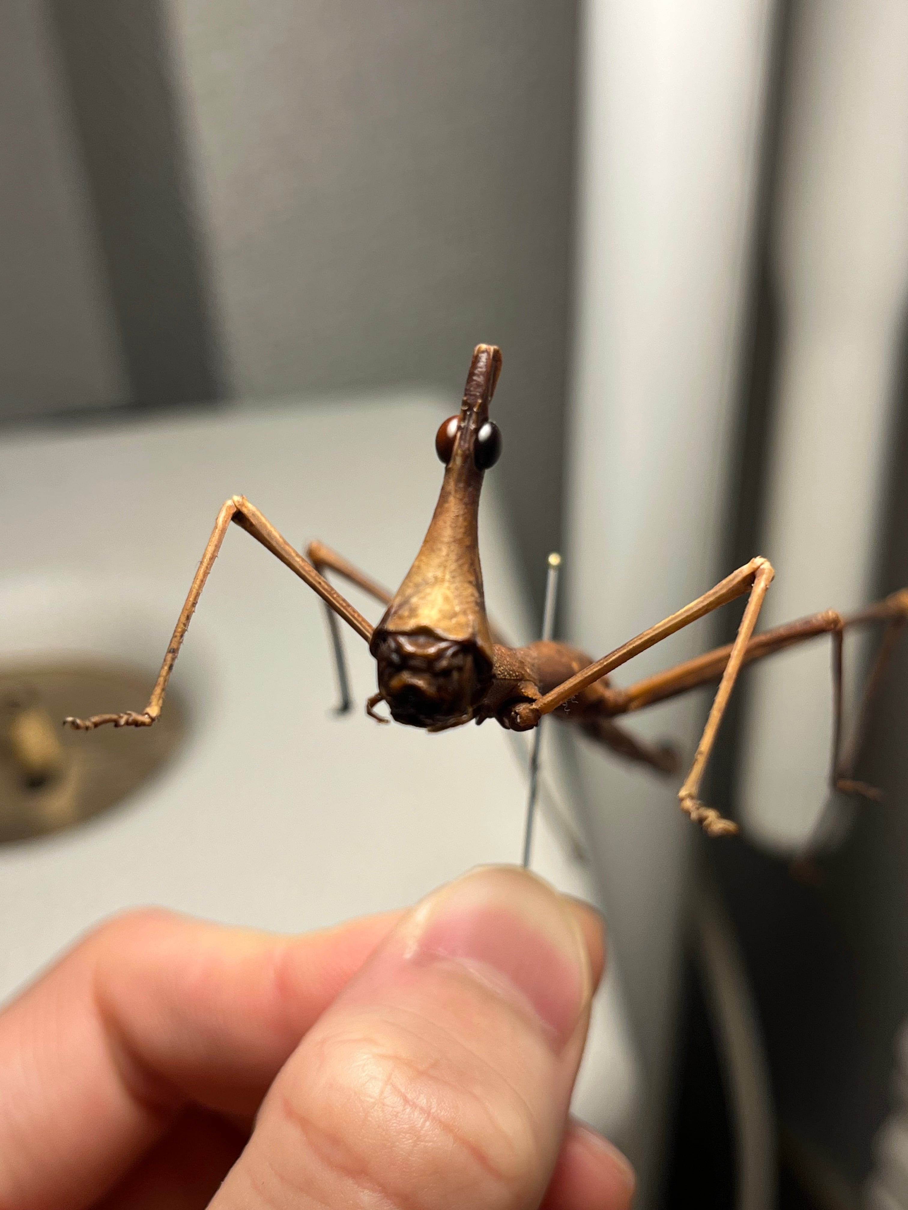 南米(ブラジル、フレンチギアナなど)に生息する、ナナフシのような細長い体と約20cmに達する巨大なサイズが特徴のバッタです。