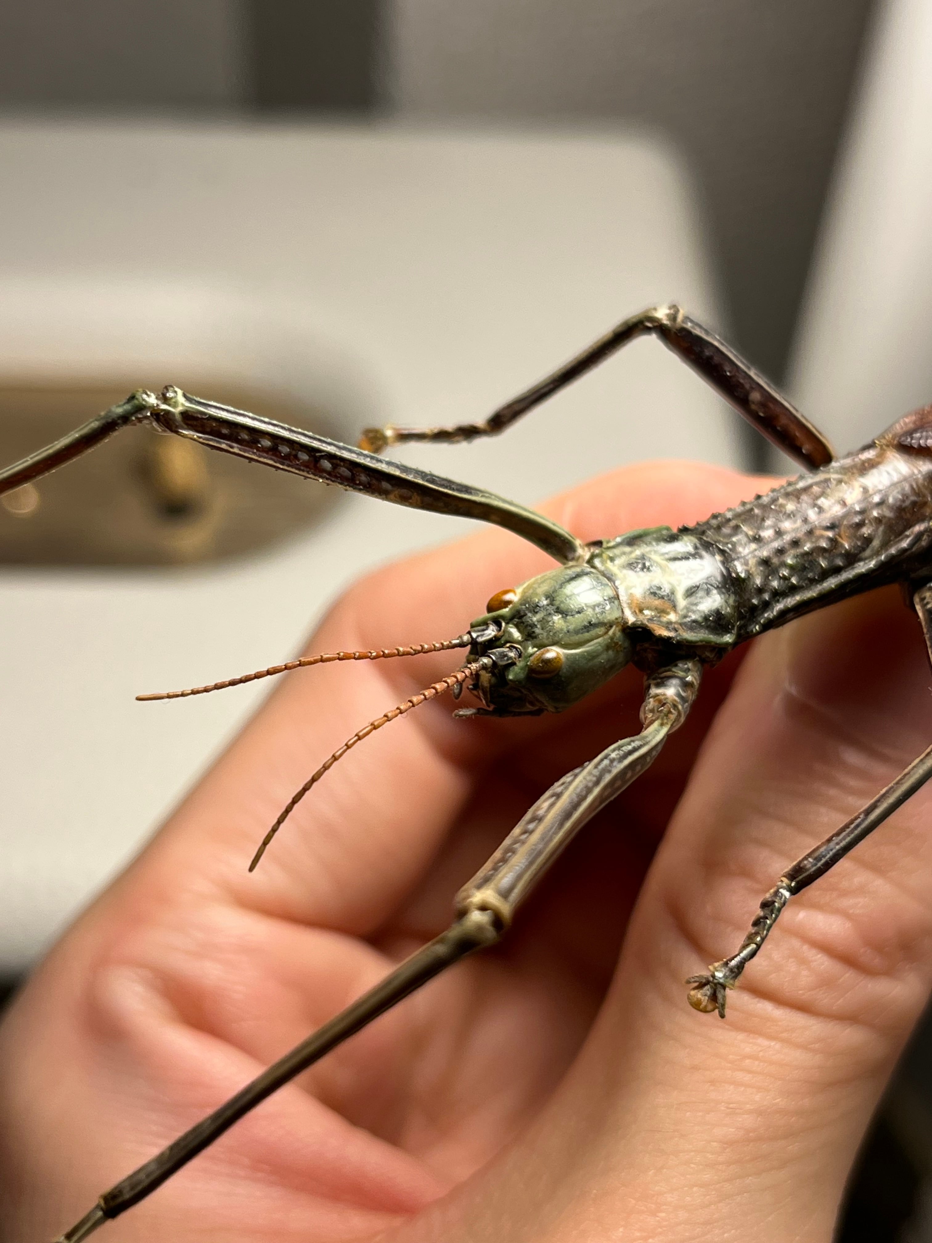 アダンという植物を好み、その葉を食べたり隠れ家にしている。肢を伸ばして葉に隠れると見つけることがとても難しい。また、単為生殖で雌だけで繁殖することができる。