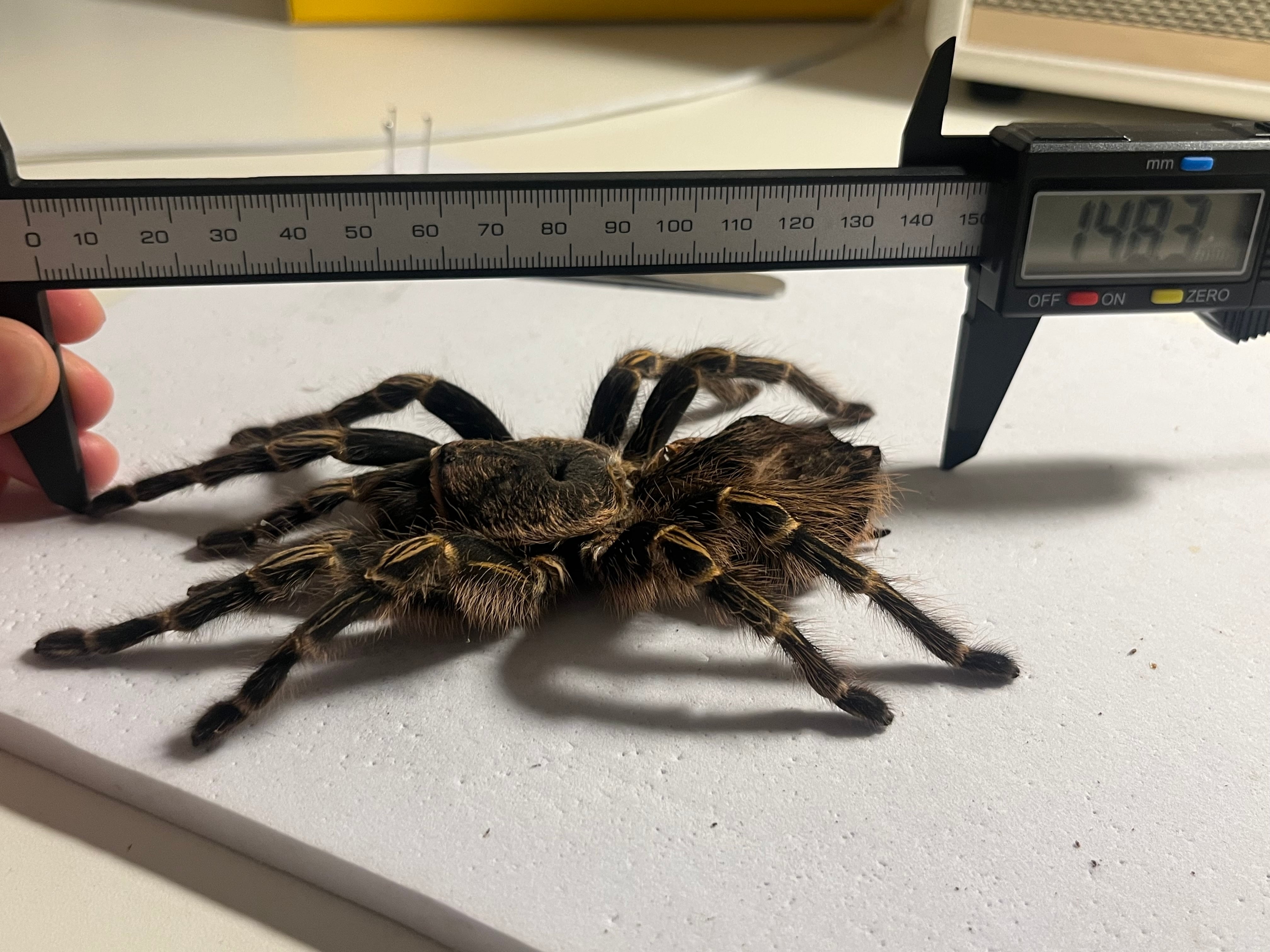 【大土蜘蛛標本】この種として最大サイズのチャコジャイアントゴールデンストライプニータランチュラ♀Grammostola pulchripesムカデサソリ