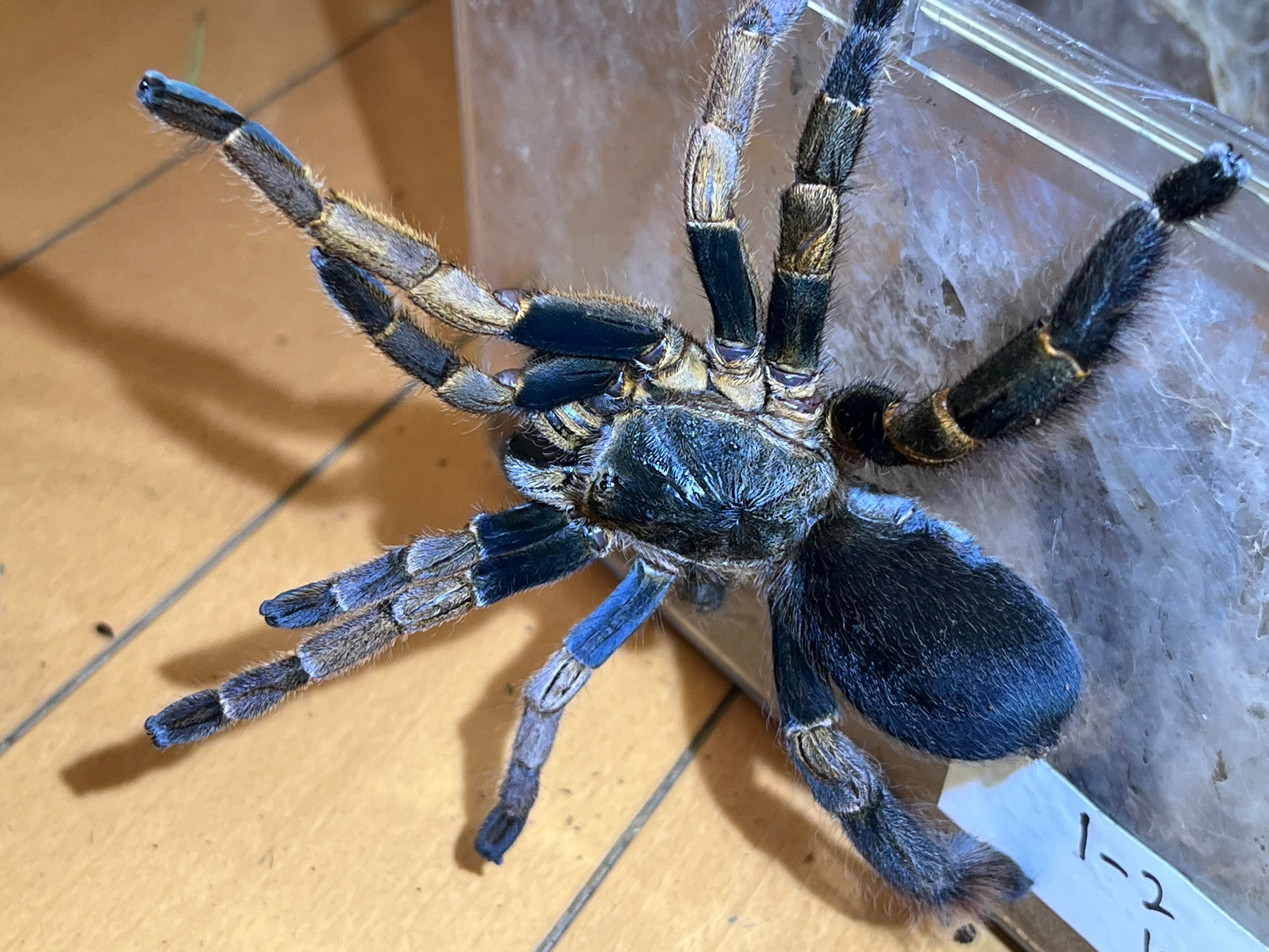 フィーマーが焦茶色で足先と触肢が薄茶色なタランチュラです。